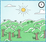 Basic vocabulary — Page 31 — Series B, pictures 14-17: morning, noon, afternoon, evening