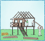 Basic vocabulary — Page 25 — Series B, pictures 11-13: to build, house, bridge, wall