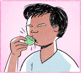 เขากำลังเฮ็ดหญัง เขากำลังบีบน้ำบักนาว