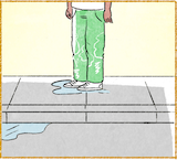 Basic vocabulary — Page 25 — Series B, pictures 08-10: to stand, sidewalk, car, dirt, trousers, to splash