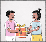 Basic vocabulary — Page 31 — Series B, pictures 09-10: to give, present, flower